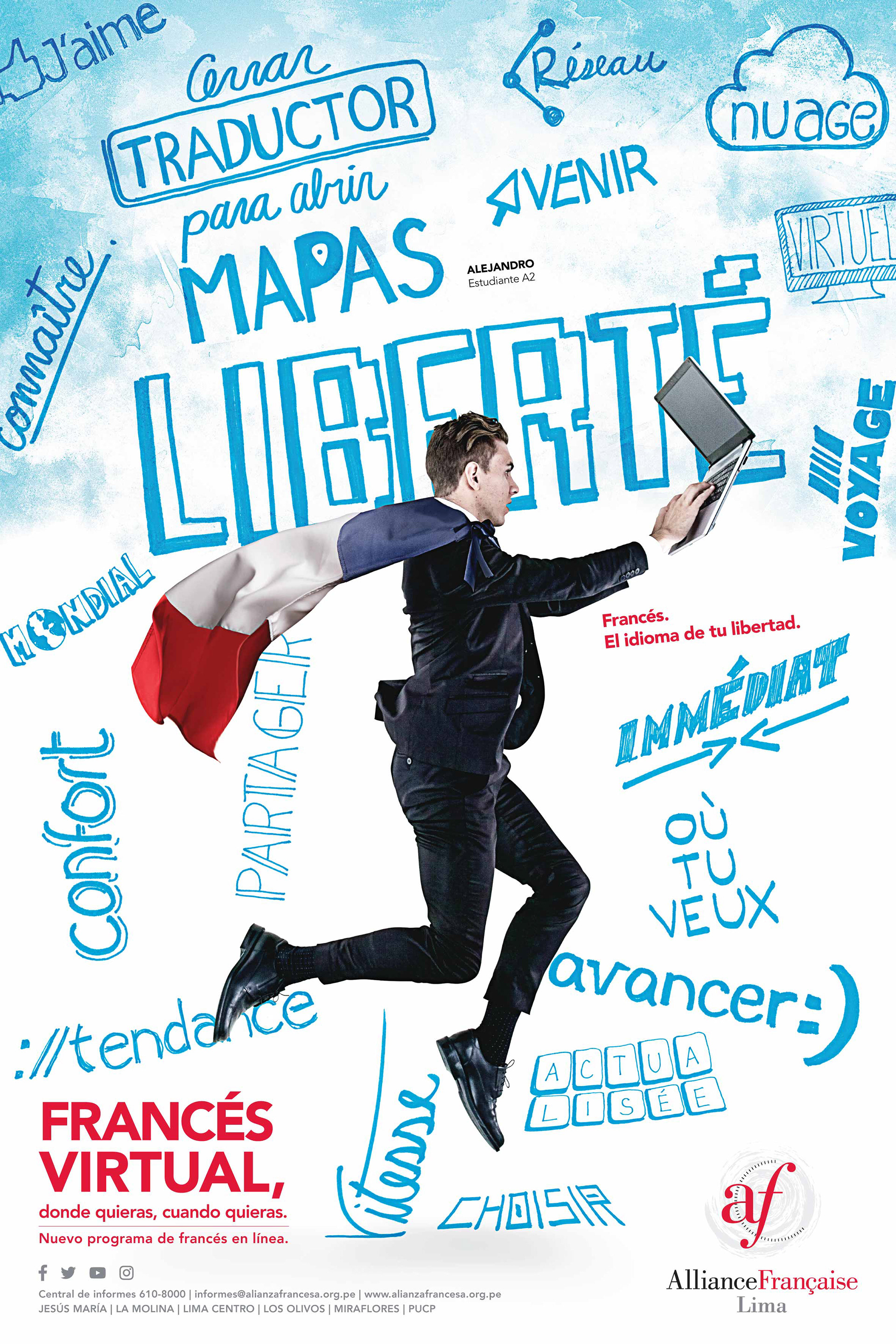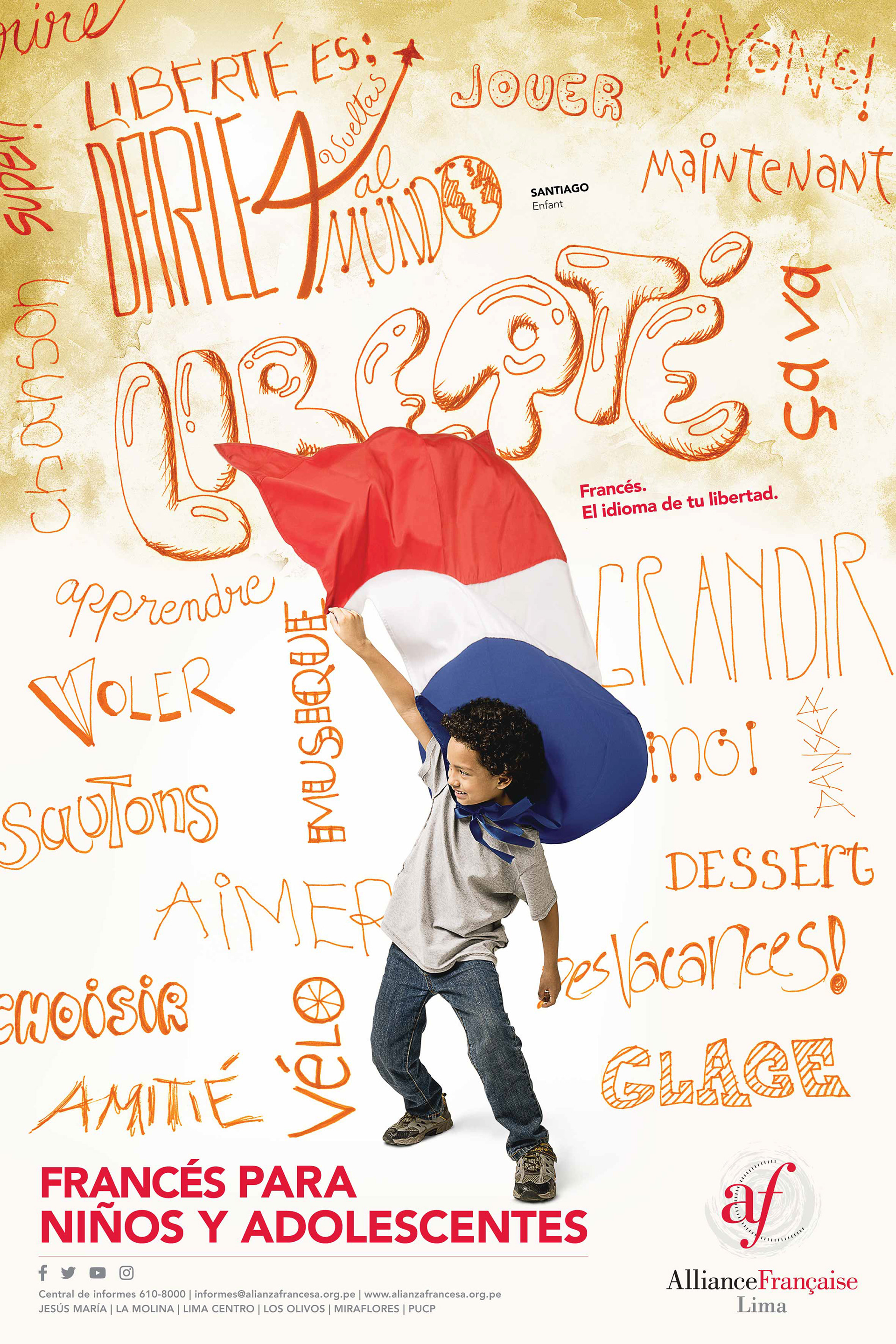 Concept and art direction for the Alliance Française Lima 2016-17. Concepto y dirección de arte para la Alianza Francesa Lima 2016-17.