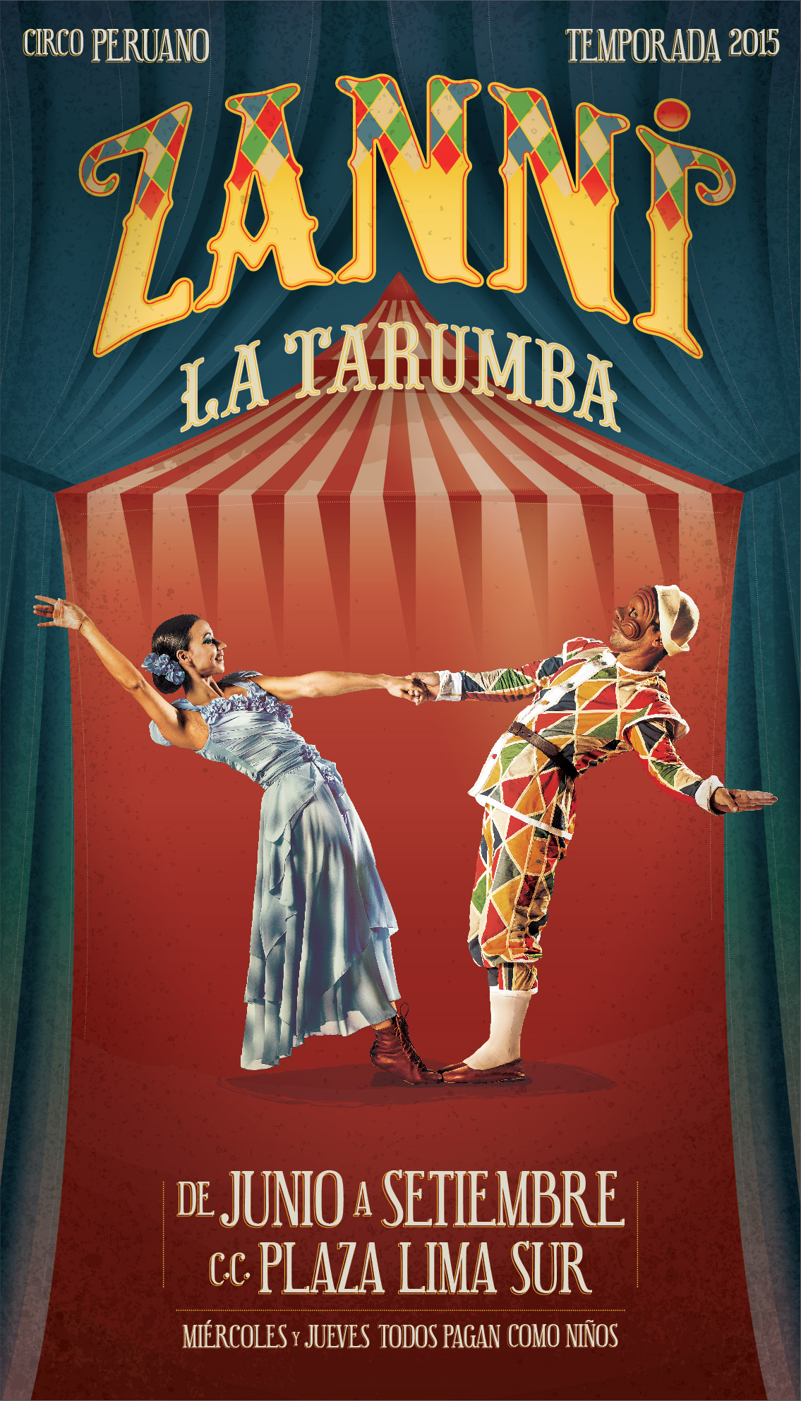 Logo and poster designed for La Tarumba Circus, 2015 season Zanni. Logo y afiche diseñado para el circo La Tarumba, temporada 2015 Zanni.